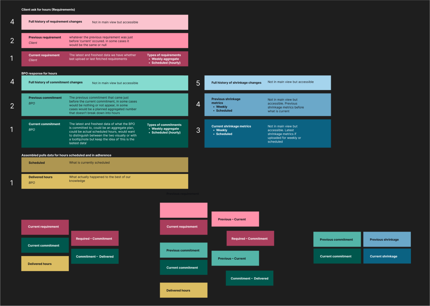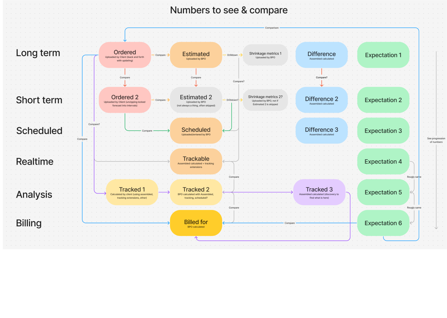 Mapped out, it was obvious that we had other data that would complete the picture if their vendor management, so we split out a feature that would pull in scheduling data, and also worked on creating a new data point that could be used to show how much work was actually done.